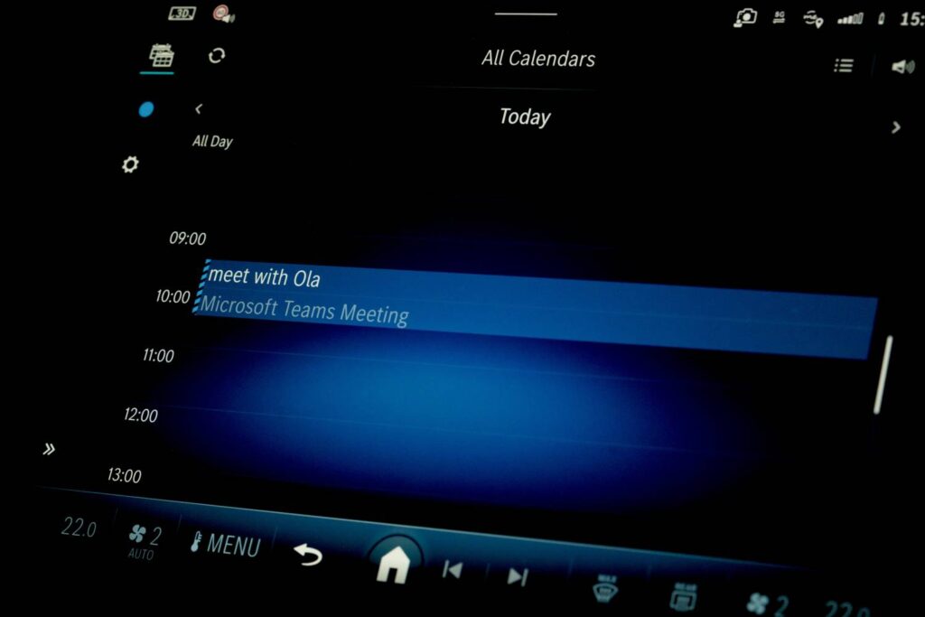 O novo Calendário MBUX substitui o aplicativo Calendário do Carro, oferecendo atualizações mais rápidas com o mínimo de esforço. A integração com aplicativos de produtividade agora é mais simples do que nunca: um único login conecta o MBUX Notes, o Calendário e, em breve, o Meetings.