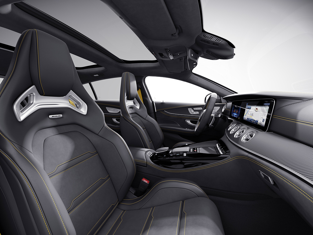 O teto solar deslizante elétrico e a opção de carregamento sem fio para smartphones entre os bancos traseiros agora são itens de série. O sistema de informação e entretenimento digital inteligente MBUX (Mercedes-Benz User Experience) também recebeu uma atualização com um novo visual, visores específicos da AMG redesenhados e funções configuráveis individualmente. Em conjunto com o sistema de som surround opcional Burmester® ou o sistema de som surround 3D high-end Burmester®, o Dolby Atmos também apresenta uma nova experiência sonora.