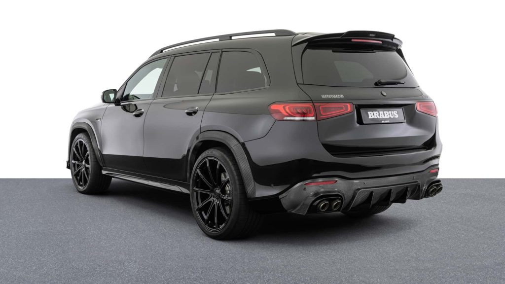 A empresa também ajusta a aparência do GLS. As entradas de ar têm acabamento em fibra de carbono e há um painel frontal mais agressivo. O utilitário esportivo anda sobre rodas Monoblock Z de 24 polegadas na cor preta que combina com a carroceria do veículo. O acabamento Shadow Grey substitui os elementos cromados no modelo padrão.