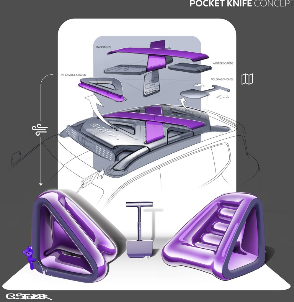 Mantendo esse visual ao ar livre, o conceito terá pelo menos uma gama de acessórios para atividades de lazer ao ar livre, que, a partir da arte conceitual, parecem que poderiam chegar à produção.