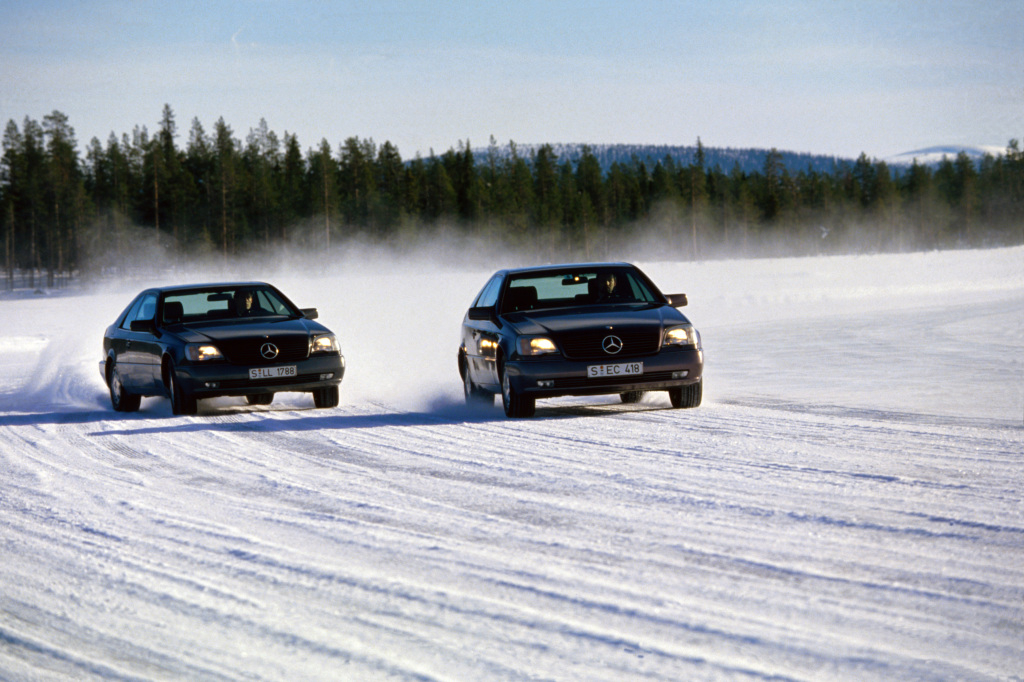 Uma tecnologia sensacional está oculta por trás de uma abreviatura despretensiosa: ESP, que significa Programa Eletrônico de Estabilidade. Ele oferece condições ao motorista em situações de condução dinamicamente críticas, aplicando uma força de frenagem medida a uma ou mais rodas e, se necessário, ajustando o torque do motor. Isso permite que o veículo siga a direção especificada pelo ângulo de direção. Em maio de 1995, a ESP estreou na série de cupê Mercedes-Benz W140.