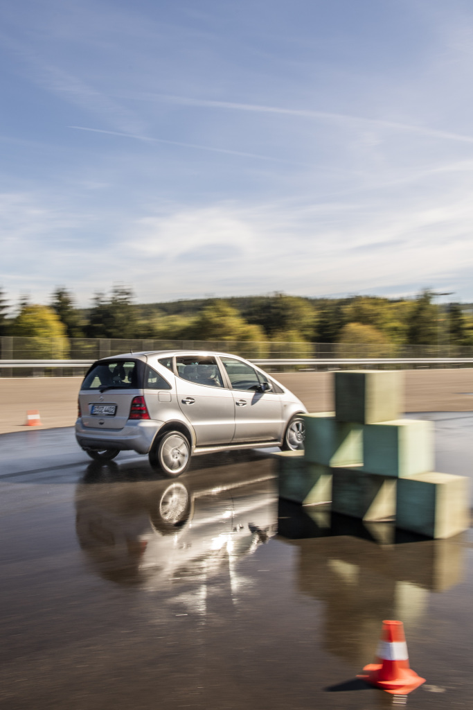 Um dado importante para começar: o rápido aumento do sistema de assistência para se tornar um padrão mundial começou em outubro de 1997. Durante um teste, chamado de “Moose Accident Test” (Teste do Alce), de um Mercedes-Benz Classe A (W168) feito por um jornalista automotivo sueco, o compacto Classe A excedeu seus limites de direção dinâmica e tombou enquanto tentava uma manobra evasiva abrupta. O resultado foi inicialmente um revés, mas a empresa abordou o problema de frente como um desafio.