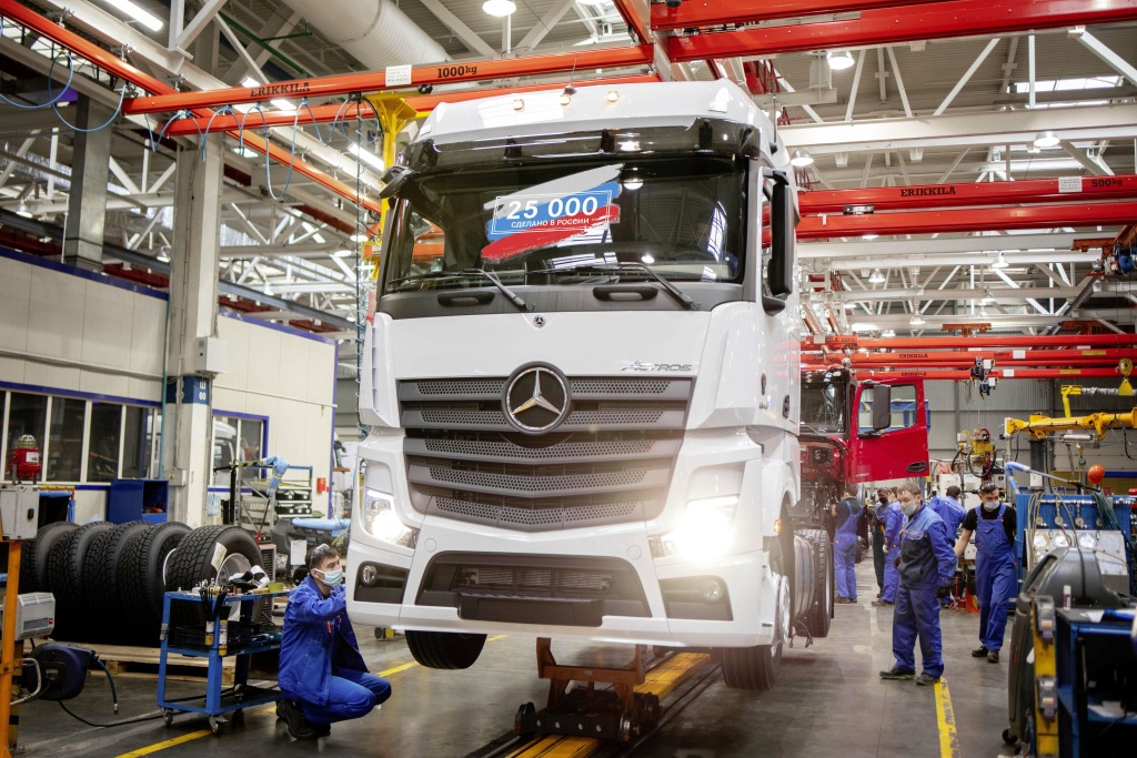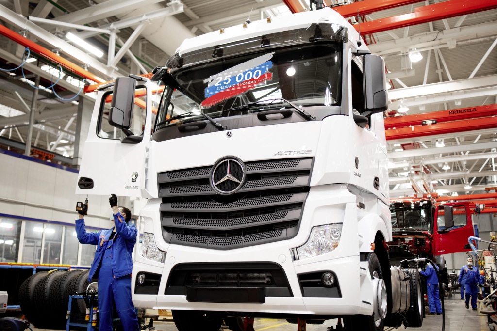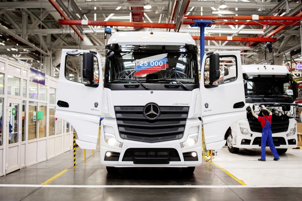 DAIMLER KAMAZ RUS, a joint venture entre a Daimler Trucks e seu parceiro russo KAMAZ atingiu mais um marco. Recentemente, o 25.000º caminhão Mercedes-Benz saiu da linha na fábrica de montagem DK RUS em Naberezhnye Chelny (Tatarstan). O caminhão marco é um Mercedes-Benz Actros 1845 LS branco, que antes era embalado em kit no CKD Center (CKD = Completamente desmontado) na fábrica da Mercedes-Benz em Wörth, Alemanha, e depois enviado para Rússia por navio porta-contentores. Em breve, o Actros será utilizado na frota de um cliente corporativo russo da Mercedes-Benz Trucks.