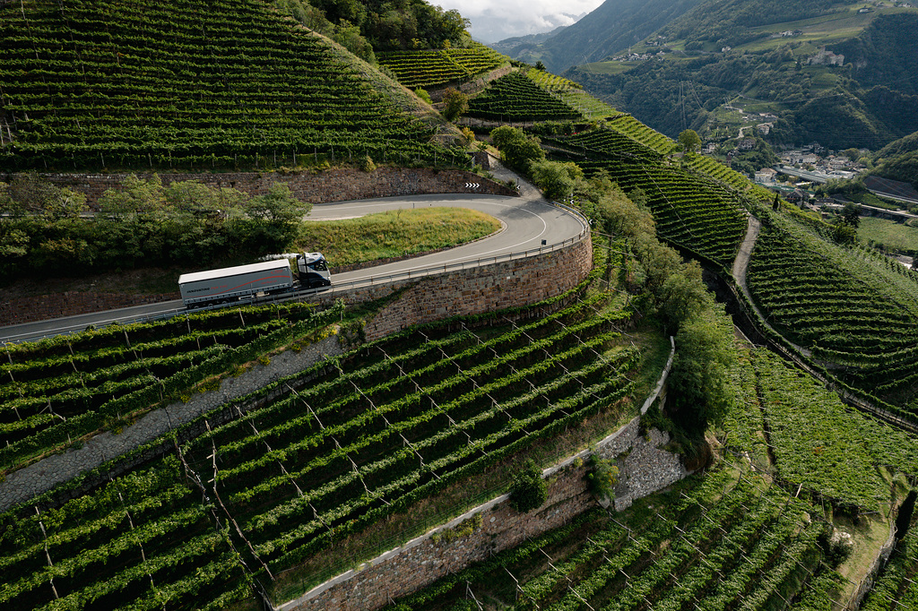 A cidade de Bolzano, na Itália, serviu de base para os test drives, pois abriga um posto de abastecimento de hidrogênio operado pela H2 South Tyrol. Além disso, a topografia da área circundante é ideal para testes de desempenho completos do sistema de célula de combustível em vários níveis de altitude. Um dos destaques dos testes foi conduzir o trator pela montanha Penser Joch a uma altitude de 2.211 metros. As descobertas deste primeiro programa de testes de altitude no que diz respeito à interação de célula de combustível e bateria em topografia exigente, bem como a estratégia operacional voltada para o futuro na rota do Brenner, estão agora sendo incorporadas ao desenvolvimento do veículo de série. Mais test drives em terreno montanhoso estão planejados para o próximo ano.