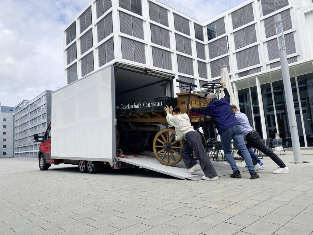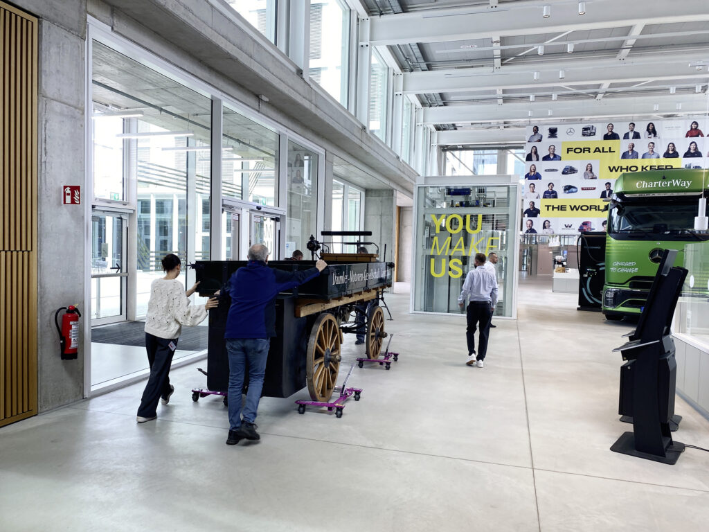 É uma visão familiar no saguão do Daimler Truck Campus, a sede da fabricante de caminhões e ônibus em Leinfelden-Echterdingen: o primeiro caminhão já construído; ou, mais precisamente, uma réplica altamente detalhada daquele veículo histórico. Com o início das férias de verão em Baden-Württemberg, a popular exposição, que celebra seu 130º aniversário no próximo ano, está dando uma pausa durante o verão.