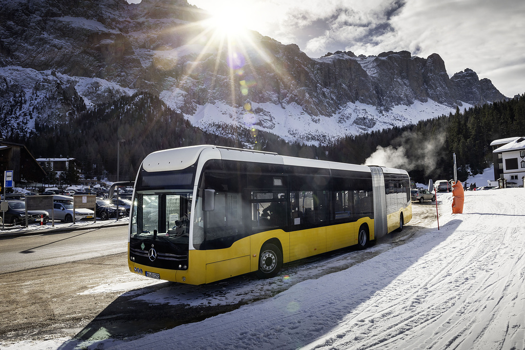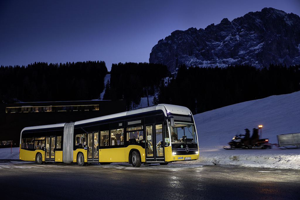 No início de 2023, uma equipe de engenheiros de teste da Mercedes-Benz foi para os Alpes com a célula de combustível eCitaro para testar seu comportamento de partida a frio em temperaturas de inverno e experimentar o sistema de gerenciamento térmico recém-desenvolvido. Ao mesmo tempo, as corridas em altitudes de mais de 1.700 metros acima do nível do mar foram destinadas a fornecer informações sobre a função do sistema de célula de combustível em altitudes extremas. O novo sistema de direção também teve que provar seu desempenho em corridas de montanha exigentes com subidas e descidas de até 15 %. Por último, mas não menos importante, o consumo de energia foi de grande interesse nessas condições desafiadoras.