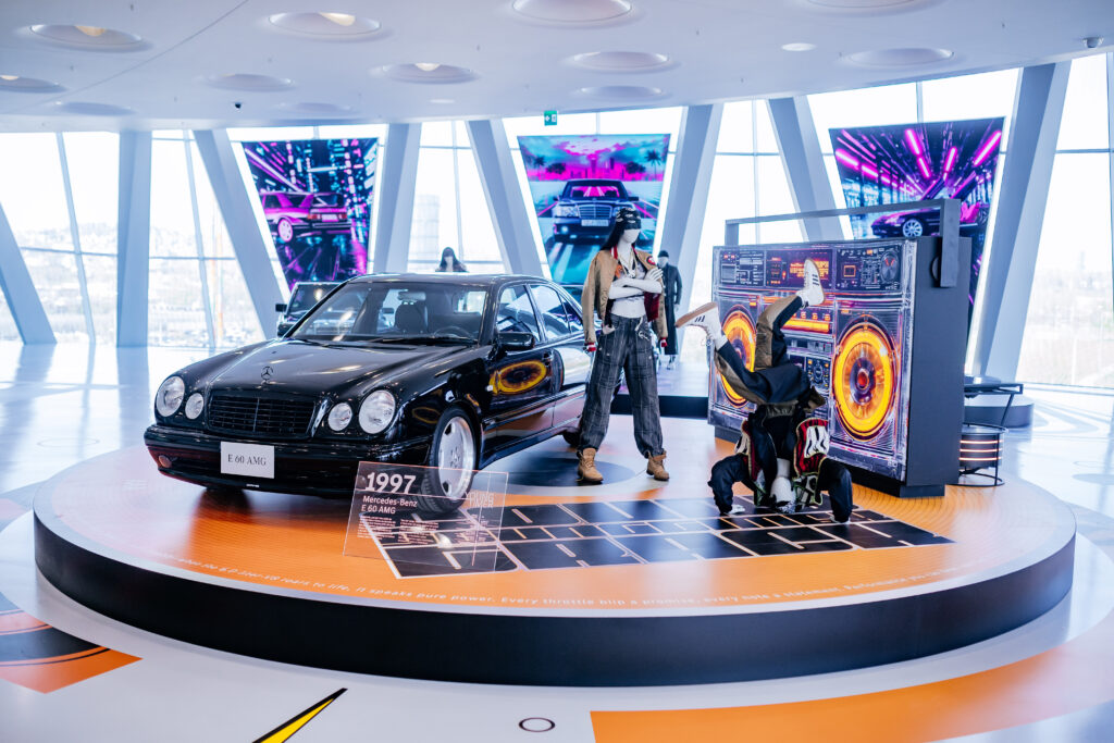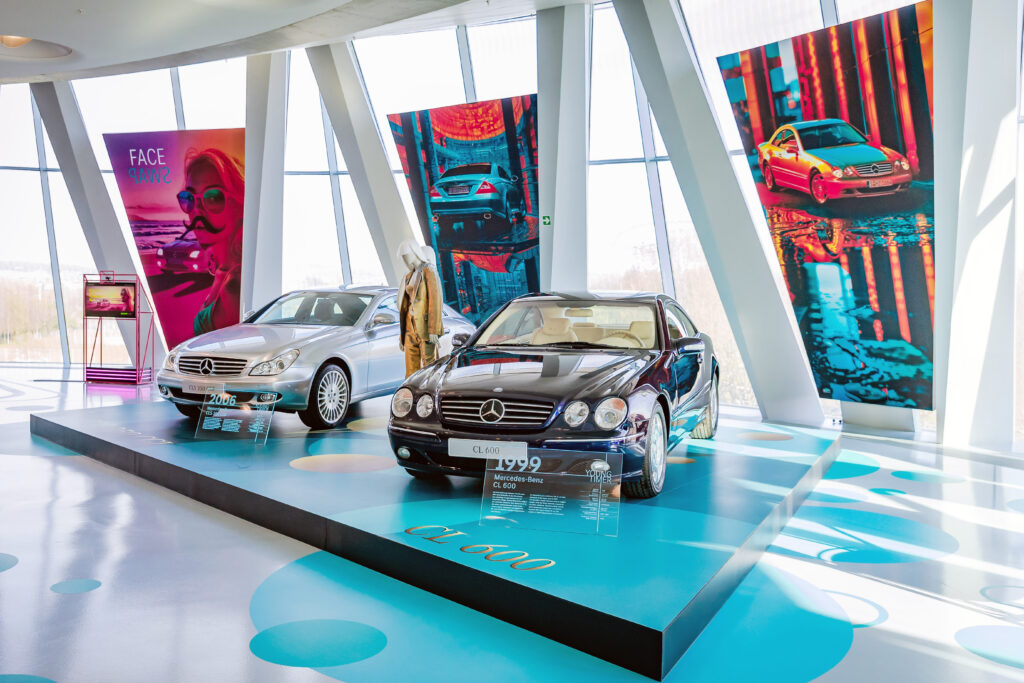O sedã elétrico E 60 AMG (série 210) é a peça central da “Subcultura” individual e criativa. O CL 600 (série 215) e o CLS 350 CGI (série 219) demonstram uma esportividade luxuosa e elegante na seção “Refinamento”. Por fim, “Space” concentra-se em abordagens visionárias em tecnologia e design com o SL 500 (série 129) e o Vision R 320 CDI (série 251).