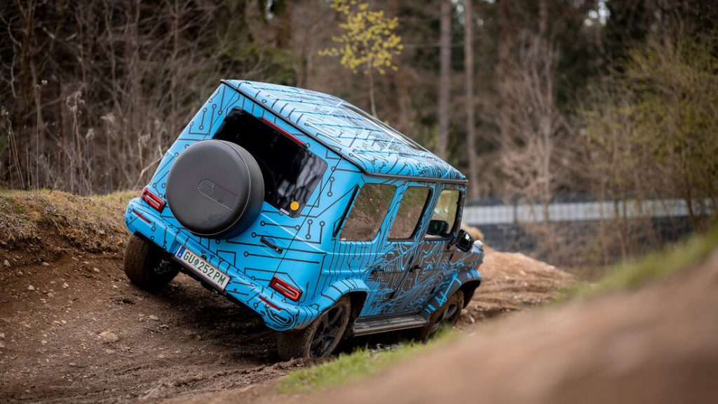 Como é típico do Classe G, o G 580 também brilhará com capacidades off-road – e até estabelecerá novos padrões. Isto não só dá ao veículo o “ G-Turn ”, mas também utiliza seus quatro motores elétricos para um círculo de viragem menor usando o “ G-Steering ”. Uma nova função inteligente de rastreamento off-road oferecerá suporte à condução off-road em três níveis disponíveis. A capacidade de escalada pode ser de até 100%, com o G 580 permanecendo estável pelo menos até um ângulo de inclinação de 35 graus. A profundidade de travessia agora deve ser de 850 milímetros – e é muito superior às variantes com motor a combustão.
