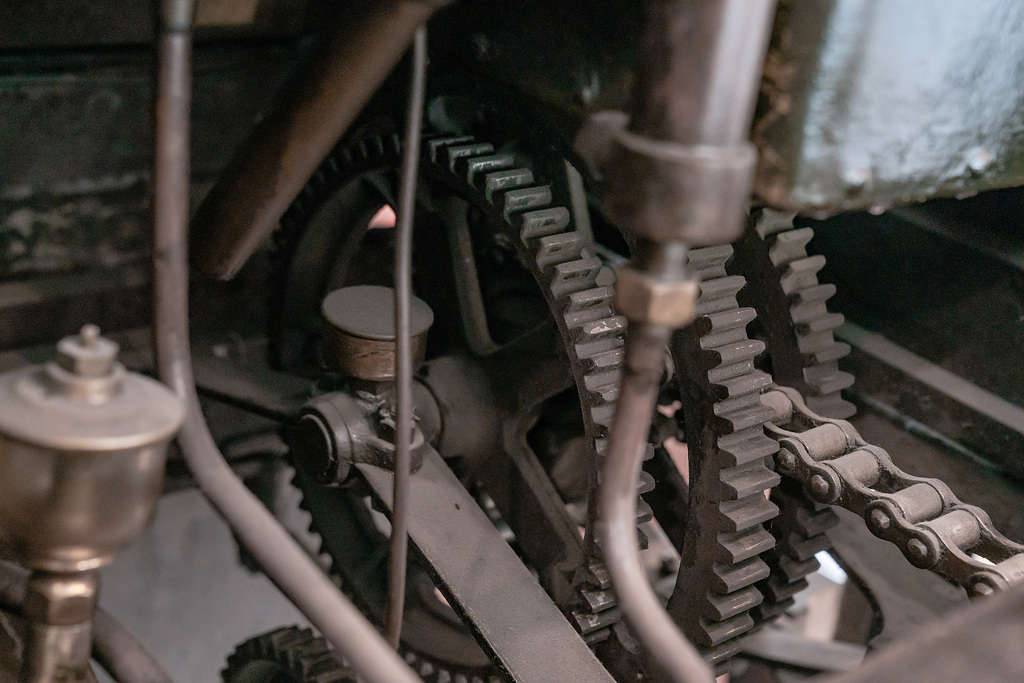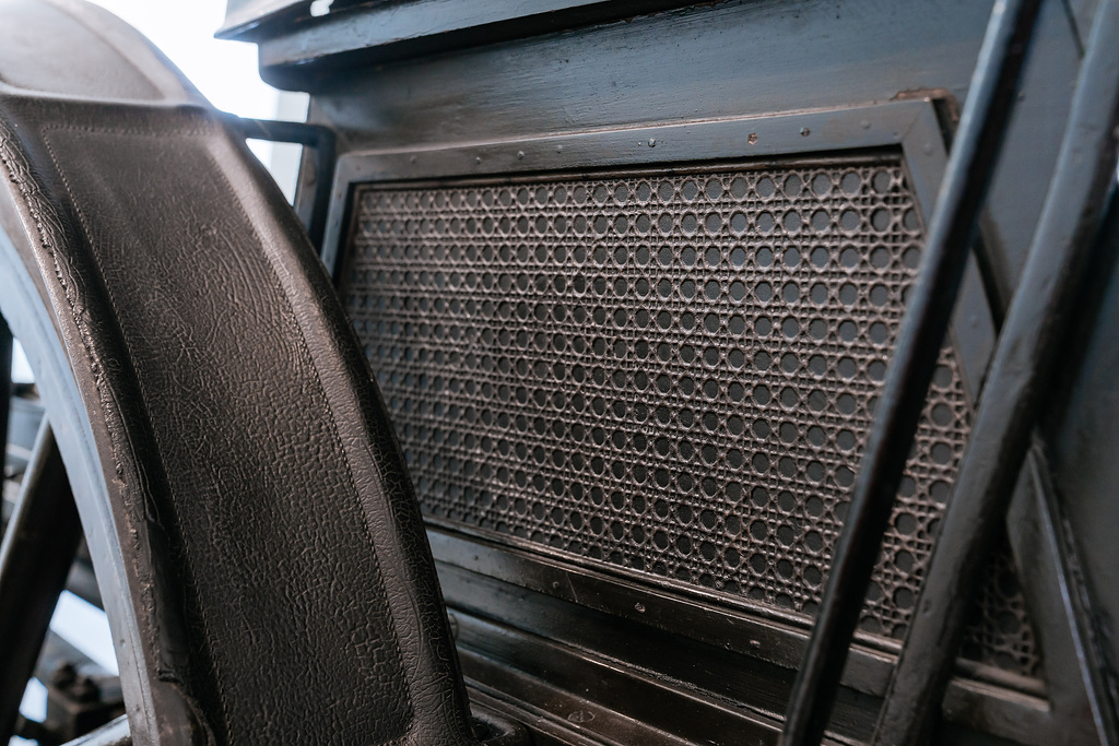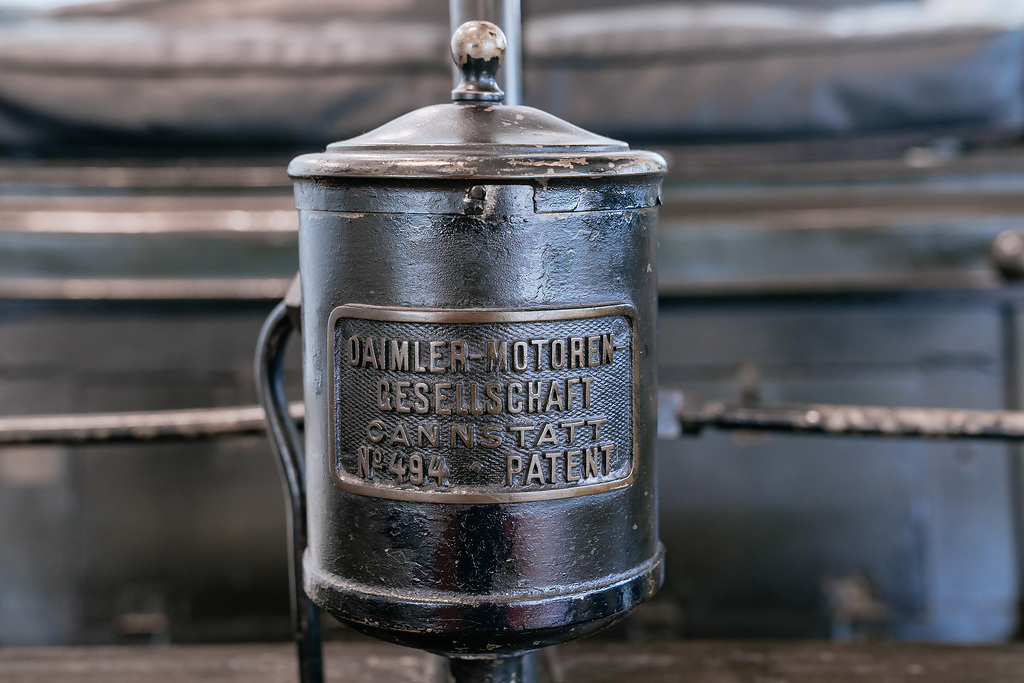 Inventivo: Tanto a frente quanto a traseira do veículo no Museu exibem os emblemas do fabricante claramente visíveis da Daimler-Motoren-Gesellschaft em Cannstatt. O motor está discretamente embutido na carroceria, que foi feita pelo construtor de carrocerias de Stuttgart, Otto Nägele. As características de identificação visíveis do Motor Car incluem a cremalheira de direção na frente do assento, uma grande roda dentada com uma transmissão de corrente sólida entre as rodas traseiras e outros elementos mecânicos. Engenhoso: o refrigerante circulava pelos tubos de aço do chassi do veículo. Um freio de bloco externo proporcionava a desaceleração, atuando nas rodas com pneus de borracha maciça da “Hamburger Gummiwerk”.