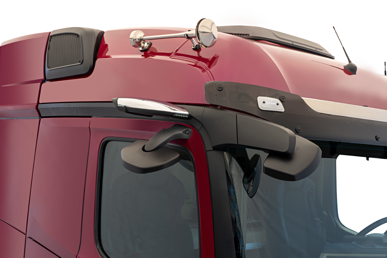 Como parte da revisão do sistema baseado em câmeras, a Mercedes-Benz Trucks também desenvolveu outros recursos. Por exemplo, uma borda de gotejamento foi incorporada na parte inferior do MirrorCam para evitar que a água da chuva escorra para a lente e cause efeitos visuais indesejáveis.