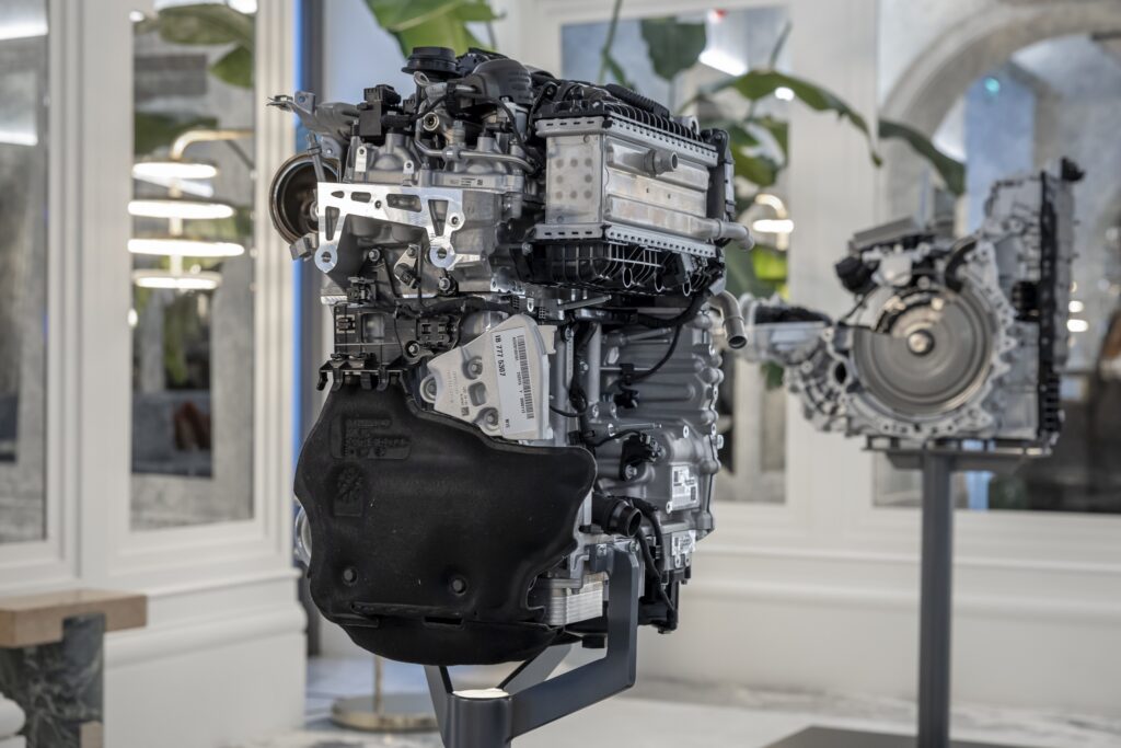 Além disso, o motor conta com um revestimento NANOSLIDE® para reduzir o atrito, um sistema de pós-tratamento de escapamento integrado ao motor e um compressor elétrico de refrigeração com tecnologia de 48 volts. Essa tecnologia garante que o ar-condicionado também possa ser operado quando o veículo estiver parado e durante as fases de condução elétrica. O motor é compacto e, graças ao seu inovador pacote NVH (Ruído, Vibrações, Aspereza), oferece funcionamento suave e ruído e vibração minimizados.