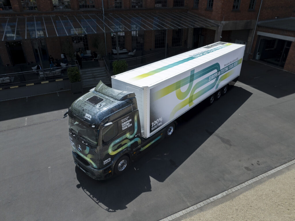 Com o “eActros 600 European Testing Tour 2024”, a Mercedes-Benz Trucks pretende adquirir uma vasta experiência numa vasta gama de rotas em diferentes topografias e zonas climáticas, tendo em vista o consumo de energia. O fabricante pretende então compartilhar essas descobertas com os clientes interessados.