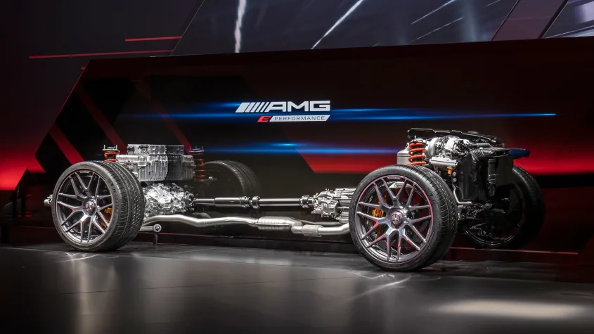 Dependendo do modo de condução, o motor elétrico aumenta a potência e o torque e se adaptam para proporcionar uma experiência de condução única. A condução totalmente elétrica também é possível. O trem de força elétrico e a bateria de alta performance com 400 volts são desenvolvimentos exclusivos da AMG. Assim como na Fórmula 1, a bateria é especificamente projetada para rápida entrega e carregamento de energia com resfriamento direto das células.