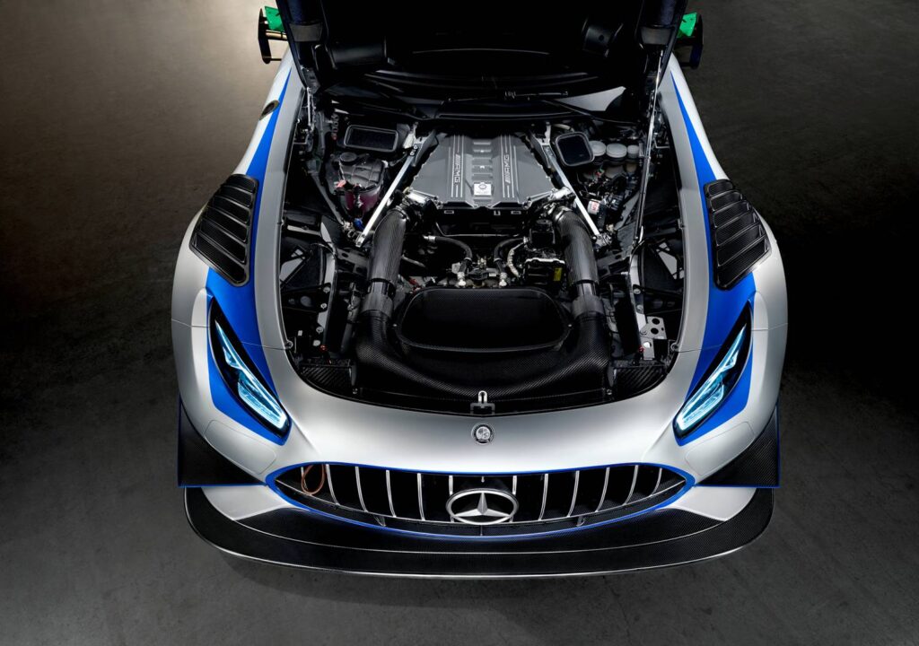 Ao contrário do modelo básico, o Mercedes-AMG GT3 Edition 130Y Motorsport não está sujeito aos limites de homologação. Por esse motivo, o lendário motor AMG V8 de 6,3 litros naturalmente aspirado foi ainda mais otimizado. Sem restritor de ar e com um sistema de escapamento especial, ele desenvolve uma potência máxima de 680 cv (500 kW). Os componentes aerodinâmicos também passaram por um amplo desenvolvimento e aumentam a força descendente em 15 % em comparação com o modelo básico GT3. Para conseguir isso, o divisor dianteiro e as saídas de ar (persianas) nas asas dianteiras foram redesenhados. Mudanças nas saias laterais, no assoalho e no difusor traseiro também aumentam a força descendente. A asa traseira mais larga também ajuda a otimizar o equilíbrio aerodinâmico. O Sistema de Redução de Arrasto (DRS), inspirado na Fórmula 1® e na Classe 1 DTM, é um recurso novo e central.