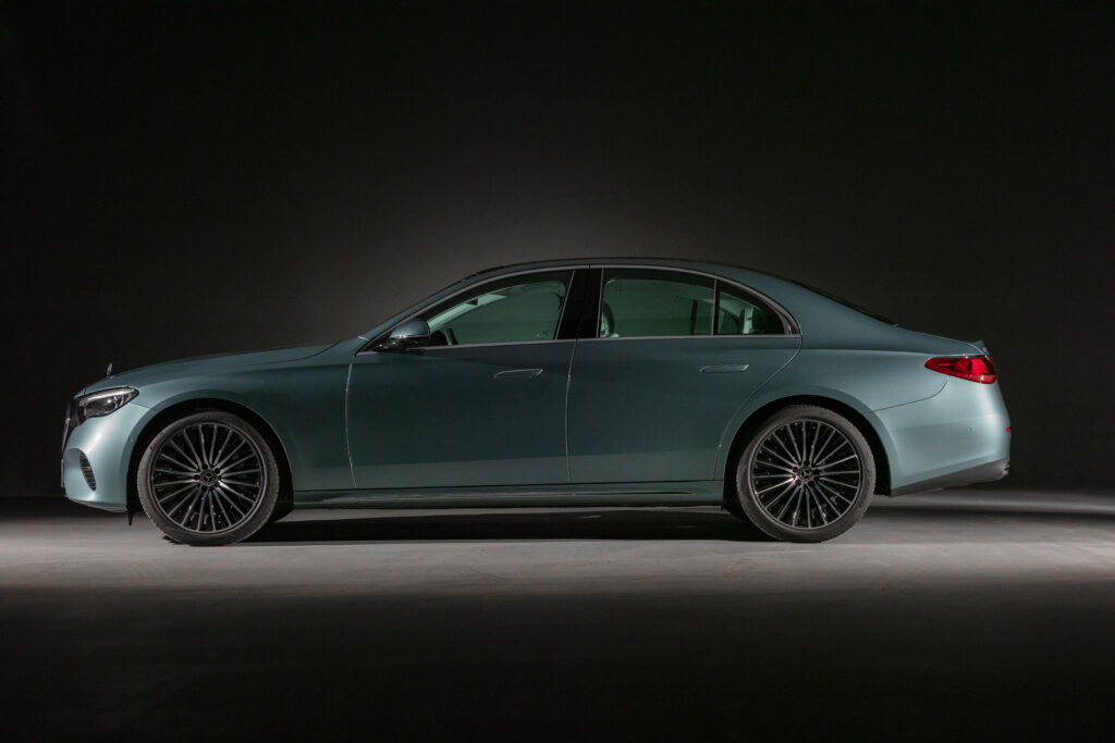 O novo Classe E possui as proporções de um sedã clássico: a dianteira curta e o capô longo são seguidos por uma cabine que fica bem recuada. A grade do radiador tridimensional está colocada na posição clássica, com a estrela no alto do capô. Além disso, possui faróis LED de alto desempenho com assistente adaptativo oferecem um design distintivo de dia e noite.