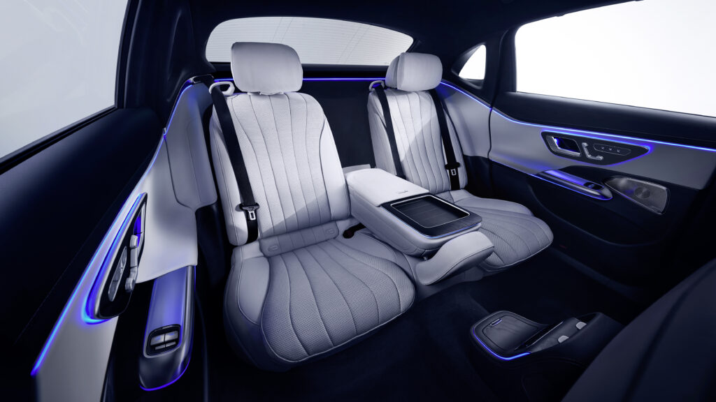 No interior, o destaque é o novo painel MBUX Superscreen totalmente envolvente e que traz mais de 10 funcionalidades adicionais exclusivas da China. Por exemplo, possui o chip Qualcomm 8295 Automotive Cockpit Platforms, que fornece conectividade 5G ultrarrápida. Ele também vem com um assistente de voz específico da China e o Assistente de Navegação Ativa Nível 2+, que cobre a direção parcialmente automatizada ponto a ponto em rodovias e vias expressas urbanas na China.
