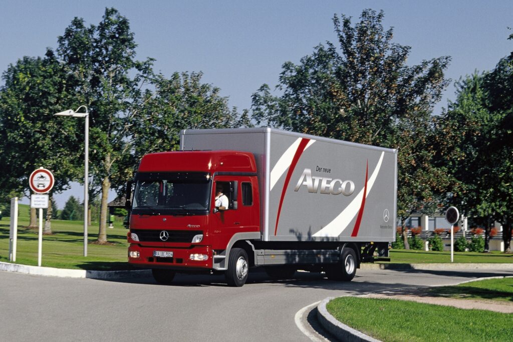 O novo Mercedes-Benz Atego impressionou imediatamente o mundo dos transportes e conquistou o cobiçado título de “Caminhão Internacional do Ano 1999”. Mas mesmo um best-seller premiado não pode descansar sobre os louros e precisa de revisões regulares para continuar a estabelecer padrões de referência no segmento. Com a primeira remodelação em 2004, o Atego foi equipado com um novao e inovador câmbio. O G85-6 com sistema automático Telligent, incluindo sistemas de segurança ABS e ASR, bem como o sistema Brake Assist BAS, aumentou o conforto de condução a um nível anteriormente alcançado apenas pelos caminhões pesados da Mercedes-Benz e, ao mesmo tempo, esses recursos foram otimizados. segurança na estrada. A gama de motores também foi melhorada e, graças à tecnologia de emissões BlueTec SCR, foi adaptada aos requisitos das normas de emissões Euro IV e V ou EEV. Com base na injeção doseada de AdBlue, foi possível eliminar eficazmente cerca de 60% do nitrogénio dos gases de escape, enquanto as partículas de fuligem foram capturadas por um filtro de partículas diesel de alto desempenho.
