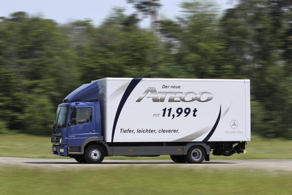 As exigências de conforto e conveniência no local de trabalho também aumentaram significativamente. A pesquisa mostrou que os motoristas entram e saem do veículo em média 30 vezes por dia durante a distribuição de mercadorias. O design do Atego tem isto em conta. O inovador conceito de chassis do Atego criou condições exemplares de acesso e de acesso entre cabinas para facilitar o trabalho dos motoristas profissionais no transporte de distribuição urbana e regional. Quatro variantes de cabine levaram em consideração os diferentes requisitos do segmento de caminhões leves e médios. Além das versões compactas para transporte de distribuição e implantação em canteiros de obras, também incluíam uma versão para transporte leve de longa distância.