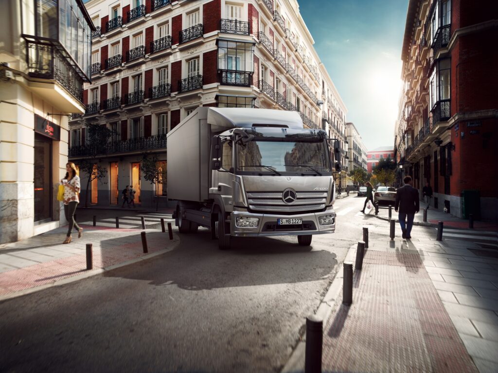 A partir de abril de 2024, o Atego estará equipado com os mais recentes sistemas de assistência à segurança. Estes incluem o assistente de travagem de emergência Active Brake Assist 6 (ABA6) e o assistente de viragem Active Sideguard Assist 2 (ASGA 2). A base para isso é uma nova plataforma eletrônica e a fusão de sensores associada, mesclando dados de radar e câmera para uma visão frontal e lateral ainda maior. A Daimler Truck vai muito além dos requisitos legais com seus sistemas de assistência de segurança em muitas áreas. Por exemplo, o ABA 6 pode intervir ativamente no processo de travagem e, a velocidades até 60 km/h, travar automaticamente não só para veículos parados, mas também para utentes da estrada que atravessam ou se aproximam ou que mudam de faixa.