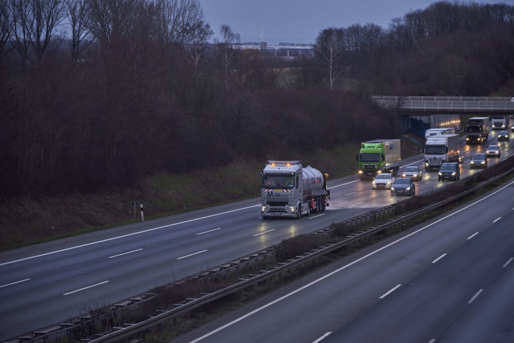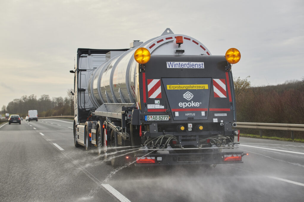A Mercedes-Benz Trucks e a Autobahn GmbH, uma entidade de propriedade do Governo Federal Alemão, testaram conjuntamente o eActros 600 elétrico a bateria no exigente serviço de inverno no início de fevereiro. A Autobahn GmbH utilizou um protótipo do caminhão elétrico em um trecho da rodovia A2 entre Hamm e Bielefeld com um semirreboque fornecido pela Epoke. Como medida preventiva contra o gelo, a Autobahn GmbH utilizou uma salmoura feita de água e sal como uma alternativa mais ecológica ao sal rodoviário convencional. O semirreboque permite o espalhamento de salmoura a uma velocidade de 80 km/h até uma largura de 12 metros. É movido independentemente do trator através da roda traseira do semirreboque. O espalhador de salmoura é controlado sem fio por meio de um controle remoto via rádio. Os testes demonstraram que a distribuição preventiva de salmoura em operações de serviço de inverno pode ser controlada com caminhões elétricos.