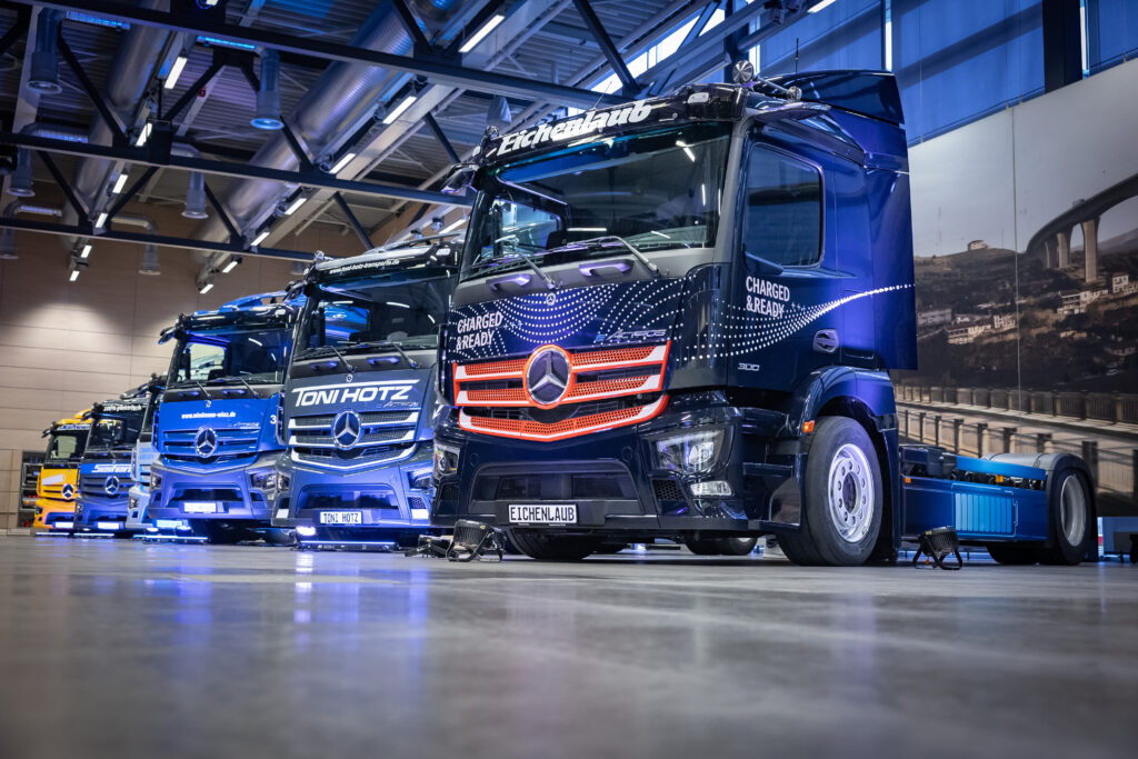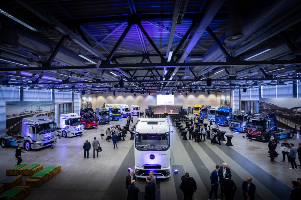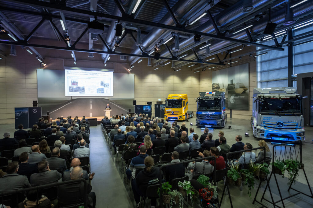 Em seu aniversário de 60 anos comemorados em 2023, a fábrica da Mercedes-Benz em Wörth está dando um passo em direção à eletrificação do tráfego ao redor da companhia: vários parceiros logísticos estão recebendo cerca de 20 eActros 300 elétricos a bateria para uso na logística. A entrega dos primeiros doze veículos aos prestadores de serviços logísticos foi celebrada na fábrica de Wörth no dia 4 de dezembro.