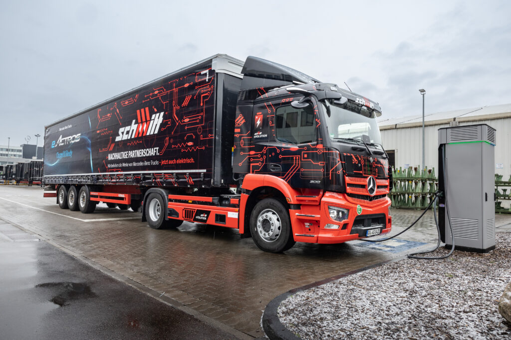 O Mercedes-Benz eActros 300/400 elétrico a bateria para transporte de distribuição pesado está saindo da linha de produção na fábrica de Wörth como uma variante rígida desde 2021. As baterias do caminhão de distribuição consistem em três (eActros 300) ou quatro conjuntos de baterias (eActros 400), cada um com capacidade instalada de 112 kWh.[1] O eActros 300 tem autonomia de até 330 quilômetros[2], enquanto o eActros 400 tem autonomia de até 400 quilômetros[3] sem carga intermediária.