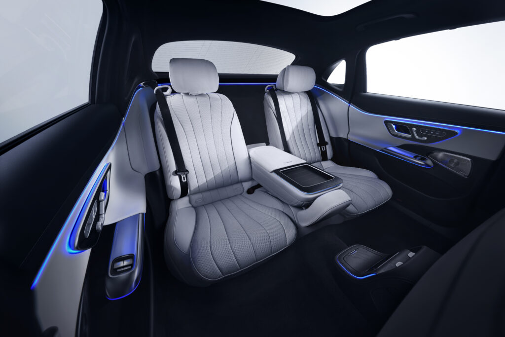 Sendo um modelo que privilegia os passageiros do banco traseiro, o Classe E L oferece bancos traseiros automáticos com extensões de assento, além disso há um touchpad para controlar as funções do veículo. Também são acrescentadas na fileira traseira itens como almofadas e iluminação ambiente surround.