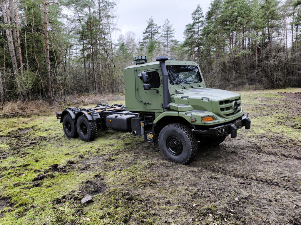 Em breve, a Mercedes-Benz Special Trucks poderá oferecer toda a linha de produtos Zetros, de 4×4 a 8×8, com cabine protegida de fábrica. Como veículo com capota, o caminhão para logística militar e tarefas de apoio oferece uma vantagem de conceito estrutural para cabines protegidas: A cabine está localizada atrás do eixo dianteiro, de modo que o peso da cabine não repousa inteiramente sobre o eixo dianteiro, mas também é distribuído proporcionalmente sobre o(s) eixo(s) traseiro(s). Isto significa que o eixo dianteiro não fica sobrecarregado pela enorme blindagem em terrenos acidentados.