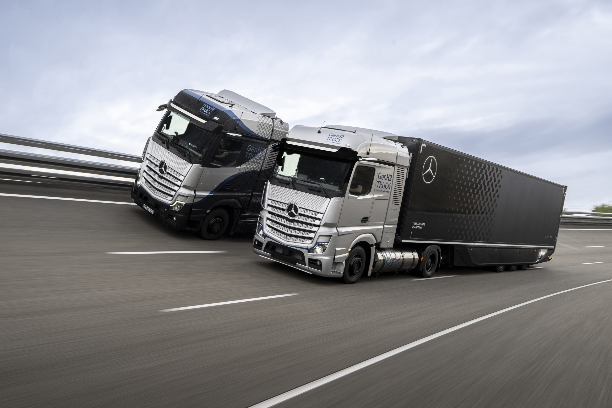 Os primeiros protótipos do Mercedes-Benz GenH2 Truck com célula de combustível já estão passando por rigorosos programas de testes desde o ano passado – tanto na pista de testes interna quanto nas vias públicas. No desenvolvimento de sistemas de propulsão baseados em hidrogênio, a Mercedes-Benz Trucks prefere o hidrogênio líquido. Neste estado agregado o portador de energia tem uma densidade de energia significativamente maior em relação ao volume em relação ao hidrogênio gasoso. Como resultado, mais hidrogênio pode ser transportado, o que aumenta significativamente a autonomia e permite um desempenho comparável do veículo com o de um caminhão a diesel convencional. O objetivo de desenvolvimento do GenH2 Truck é uma autonomia de até 1.000 quilômetros e mais. Isso torna o caminhão adequado para aplicações particularmente flexíveis e exigentes, especialmente no importante segmento de transporte pesado de longa distância. O início da produção em série de caminhões movidos a hidrogênio está previsto para a segunda metade da década.