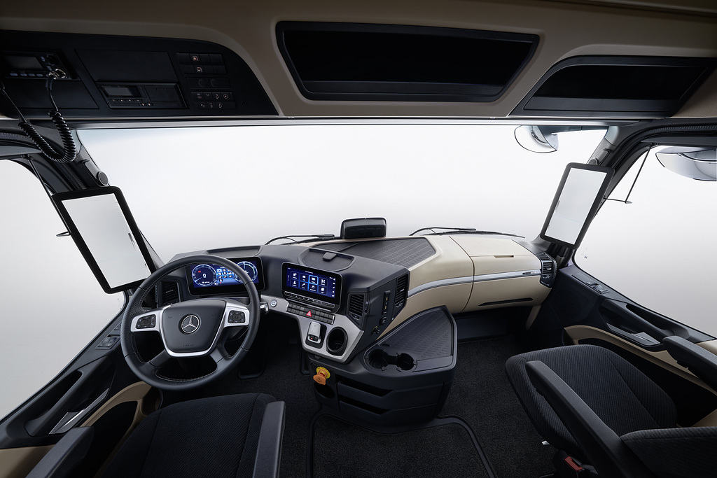 Ao mesmo tempo, a Daimler Truck desenvolveu uma nova plataforma eletrônica que usa fusão de sensores para mesclar dados de radar e câmera e, assim, permitir uma visão de área ainda mais ampla para a frente e os lados. A plataforma eletrônica oferece uma capacidade de processamento de dados 20 vezes maior, e o total de seis sensores instalados agora pode cobrir um ângulo de 270 graus ao redor do veículo. Graças ao ângulo de visão significativamente ampliado, os sistemas de assistência instalados podem fazer uso ainda melhor de seus pontos fortes.