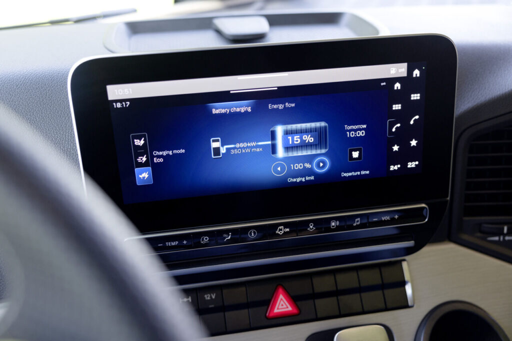 O cockpit multimídia Interactive 2 fornece informações contínuas sobre o estado de carga das baterias, a autonomia restante e o consumo de energia atual e médio em kWh por 100 km. No circuito de 72 quilômetros do centro de atendimento ao cliente de Wörth pela B 9 até Germersheim e Schwegenheim, de lá pela B 272 até Weingarten e Hochstadt e, finalmente, por estradas rurais menores, uma área industrial e a rodovia A 65 de volta ao Centro de Atendimento ao Cliente, o consumo de energia em uma viagem em um protótipo quase em produção do eActos 600 é de cerca de 111 kWh por 100 quilômetros em média. Ao arrancar, o visor mostrou um estado de carga de 85 % e uma autonomia restante de 470 km. Ao chegar de volta ao Centro de Atendimento ao Cliente, os números correspondentes foram um estado de carga de 71 % e uma autonomia restante de 370 km.