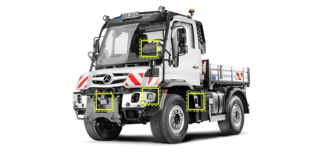 A Mercedes-Benz Special Trucks exibirá um transportador de implementos Unimog que atende aos requisitos da legislação da UE sobre segurança de veículos (Regulamento da UE 2019/2144 Regulamento Geral de Segurança II, GSR para abreviar), que entra em vigor em julho de 2024 e pode, portanto, fornecer mais suporte ao motorista e maior segurança aos usuários da estrada. O novo GSR inclui Sideguard Assist, Frontguard Assist, Traffic Sign Assist, uma câmera de ré e um sistema de alerta de perda de pressão dos pneus como padrão.