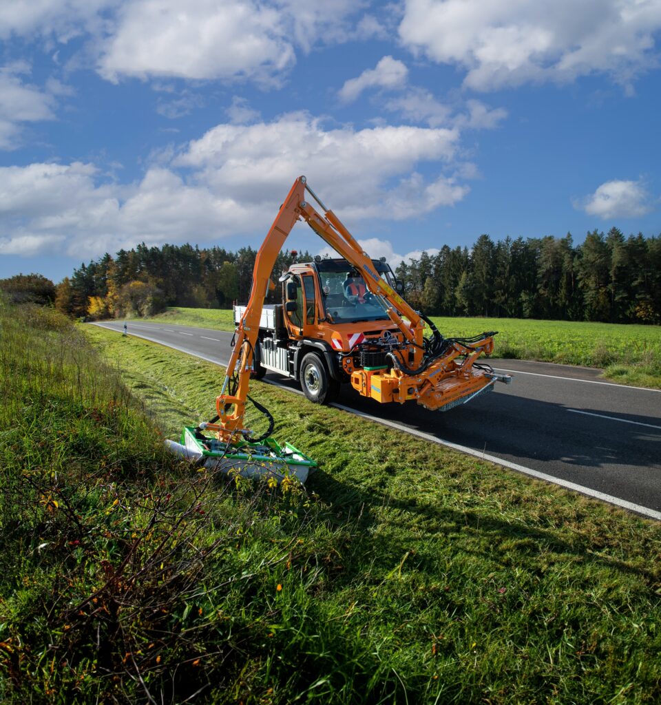 Unimog U 535 com cortadores ECO da Mulag para uma manutenção verde suave