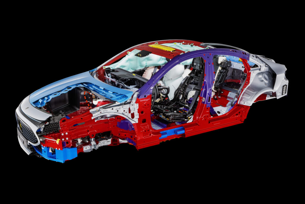 Como um veículo totalmente elétrico, o novo CLA conta com um sistema de alta voltagem – e aqui, também, a Mercedes-Benz não faz concessões. Integrada à estrutura do veículo, a carcaça da bateria protege as unidades de armazenamento de energia em caso de emergência. A reação térmica da bateria é evitada por medidas estruturais, como maior espaçamento entre as células e uma arquitetura modular sofisticada.
