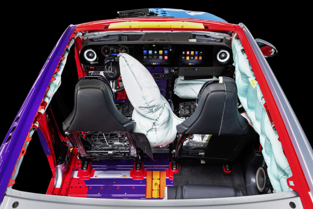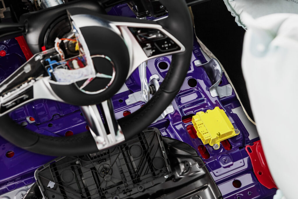 Essa inovação está localizada no encosto do banco do motorista e é acionada dependendo da gravidade do acidente e da ocupação do banco. Este sistema de airbag adicional reforça o compromisso da Mercedes-Benz com a adoção antecipada de novas tecnologias – não como opcional, mas como padrão.
