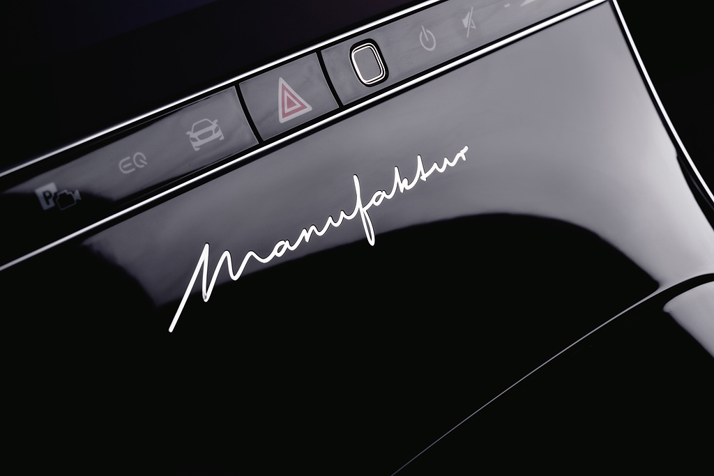 Pela primeira vez, o Night Series também pode ser combinado com o azul náutico metálico. Este pacote de design opcional oferece duas opções de cores refinadas para o interior: couro Nappa Maybach Exclusive preto ou MANUFAKTUR branco profundo/preto pérola. Um delicado efeito madrepérola em superfícies selecionadas, combinado com debrum em cinza-dourado, ressalta o requinte artesanal.