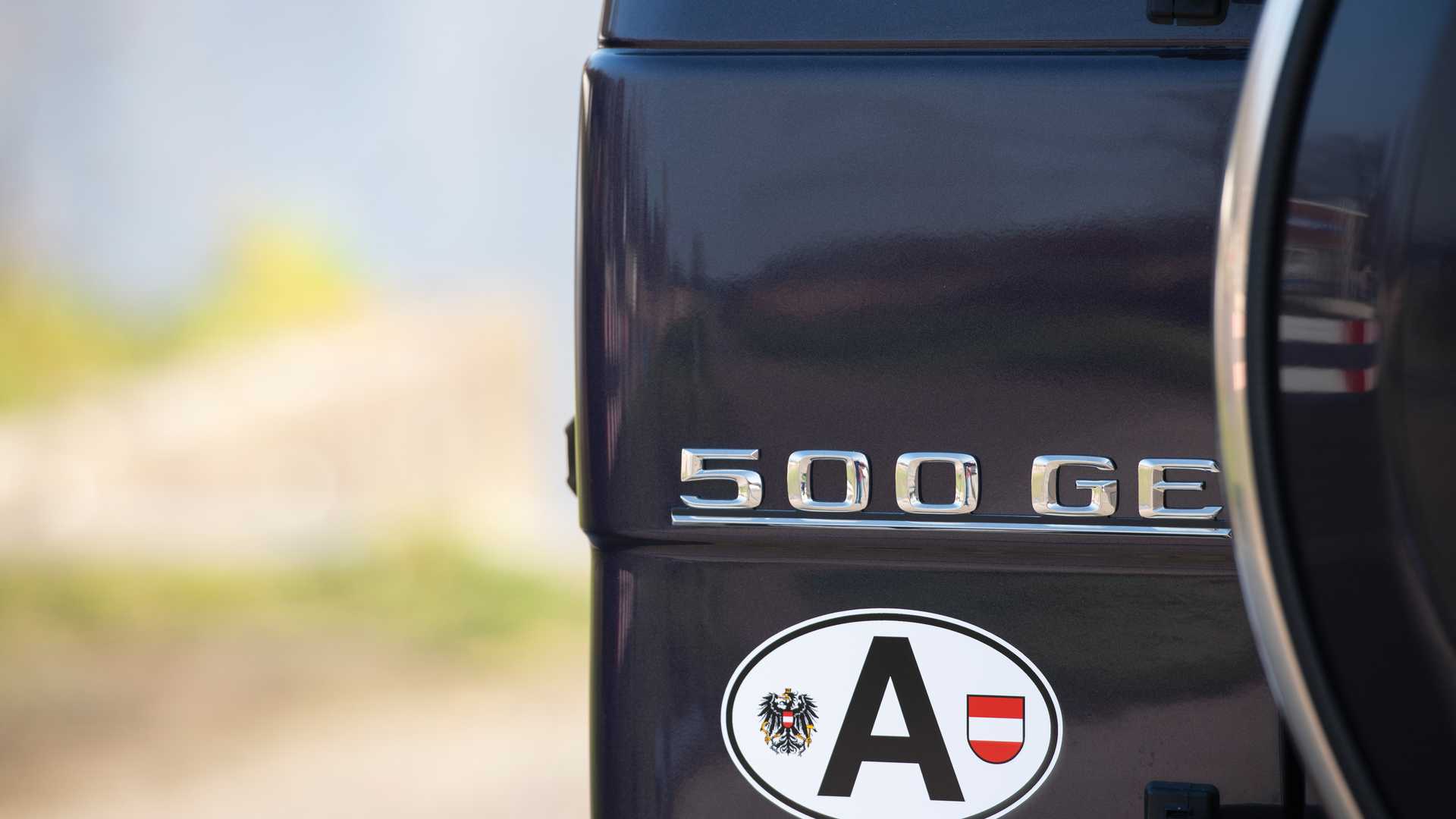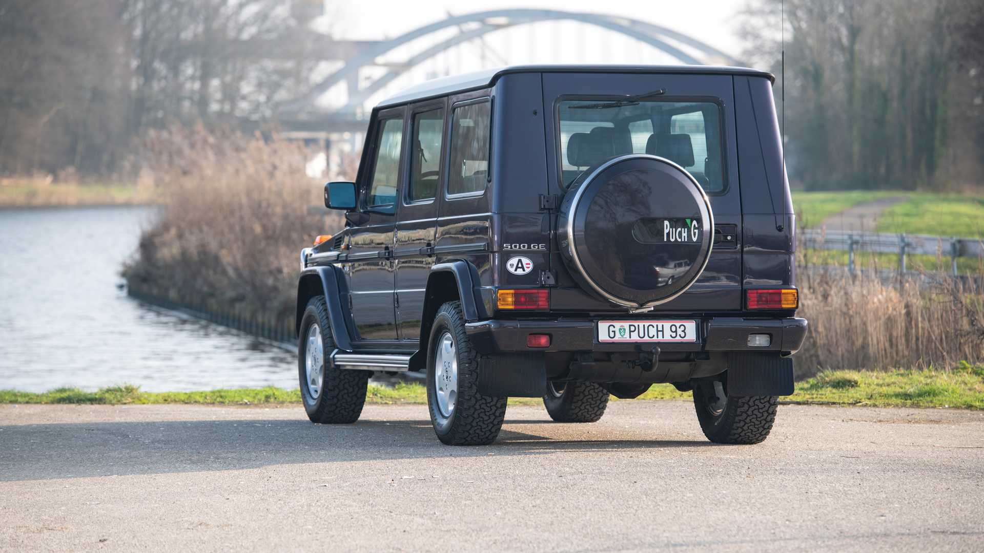 Em alguns países – como Áustria e Suíça – a Classe G foi vendido até o final de 1999 com o emblema Puch e não o logotipo da Mercedes. Este G é um deles, mas um exemplo excepcionalmente raro, já que é apenas um dos três 500 GE já feitos que evitou a estrela de três pontas do distintivo Puch. Vendido apenas na forma de cinco portas e distância entre eixos longa, o primeiro Classe G movido a V8 realmente teve uma produção curta, pois apenas 446 exemplos foram montados entre 1993 e 1994, com o motor de oito cilindros retornando em 1998 com o G500.