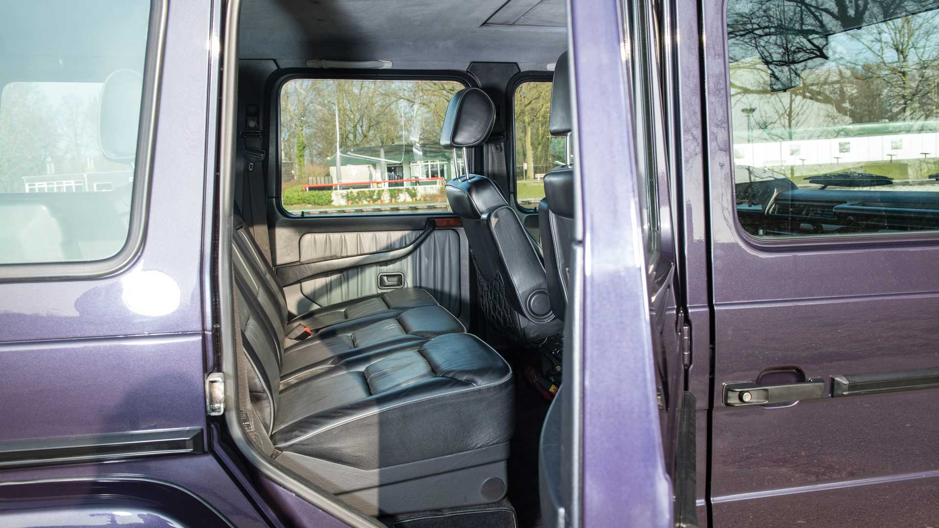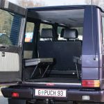 A tonalidade da pintura batizada de Amethystblau Metallic, este Puch 500 GE tem uma história interessante, pois era usado antigamente para homologação, testes e divulgação de imprensa. Ele está na capa de muitas brochuras e revistas da década de 1990 e vem carregado com uma tonelada de equipamento padrão, incluindo um bull-bar, degraus laterais, rodas de liga leve, bancos dianteiros elétricos e aquecidos, controle de cruzeiro e teto solar elétrico.