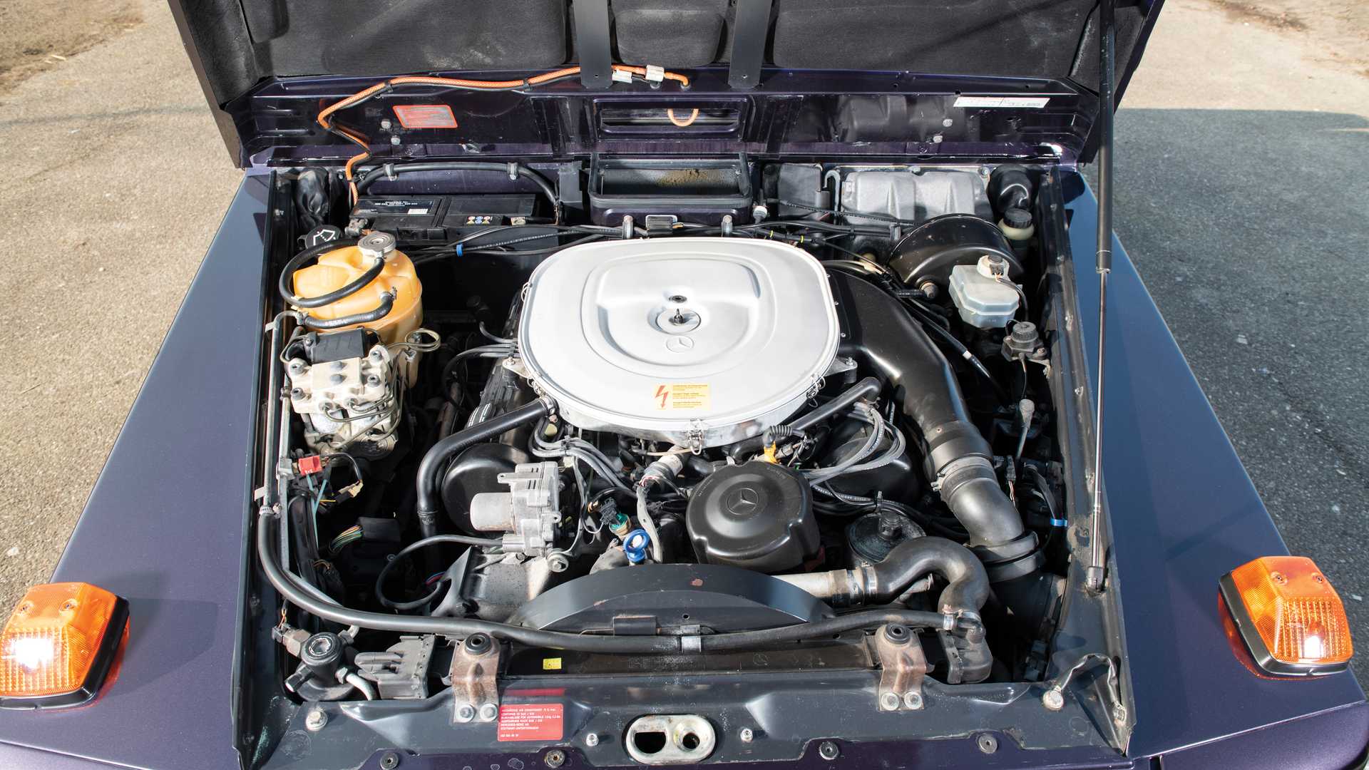 Seu motor M117 de 5,0 litros debita 320 cv e 51,9 m.kgf de torque, números que fazem o grande utilitário atingir de 0 a 100 km/h em 10,5 segundos e uma velocidade máxima de 175 km/h. Isso não parece impressionante para os padrões de hoje, mas lembramos que o 500 GE não era exatamente leve, pesando 2.370 kg.