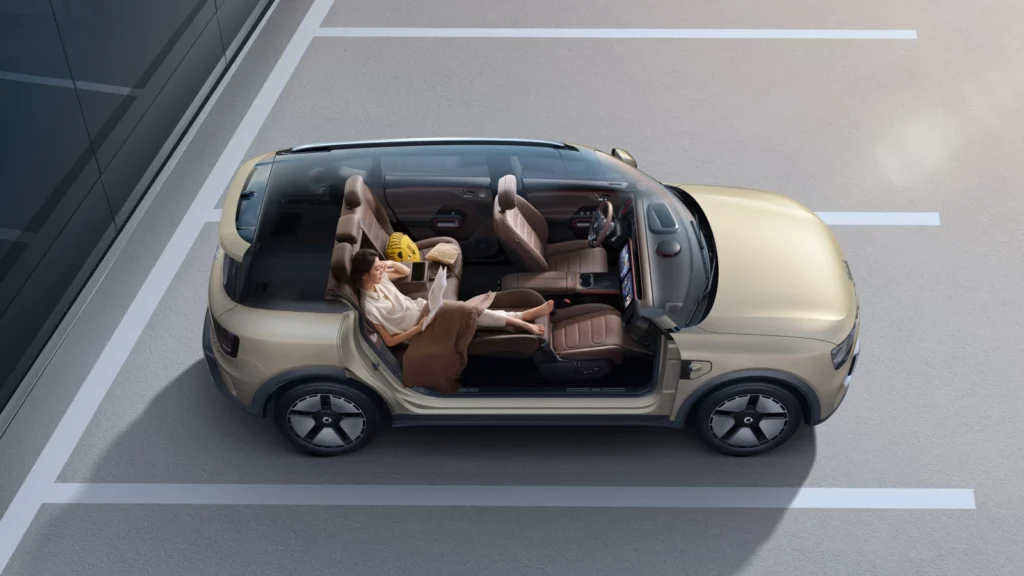Seis cores interiores estão disponíveis, como Lightyear Brown e Ouasar Olive. Elementos de madeira também são incorporados ao design. A tela dupla de 13 polegadas 2.5K chama a atenção, junto com um AR-HUD de 25,6 polegadas e um painel de instrumentos LCD de 10,3 polegadas, alimentado por um chip AMD V2000. O sistema operacional vem do smart OS 2.0. O sistema de som é suportado por 20 alto-falantes Sennheiser. Um alto-falante portátil destacável também está disponível. O assistente de voz inteligente do cockpit é chamado de Leo.