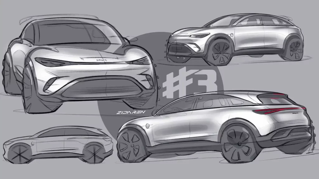 Smart divulga esboços do SUV #3, modelo fará sua estreia no Salão de Xangai